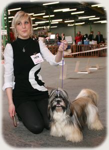 Jolie tête dans son ensemble. Excellente antérieurs. queue bien insérée et bien shih tzu. excellent corps et os.